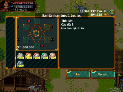 Cần 50 nguyên liệu các loại: Thỏi vàng, Thỏi bạc, Thỏi sắt, Thỏi đồng, Thỏi titan, Cục đá.